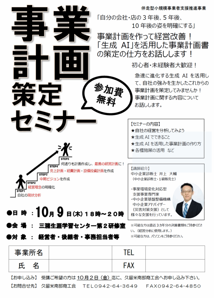 久留米市南部の5町からなる広範囲な事業所会員様を有する商工会です